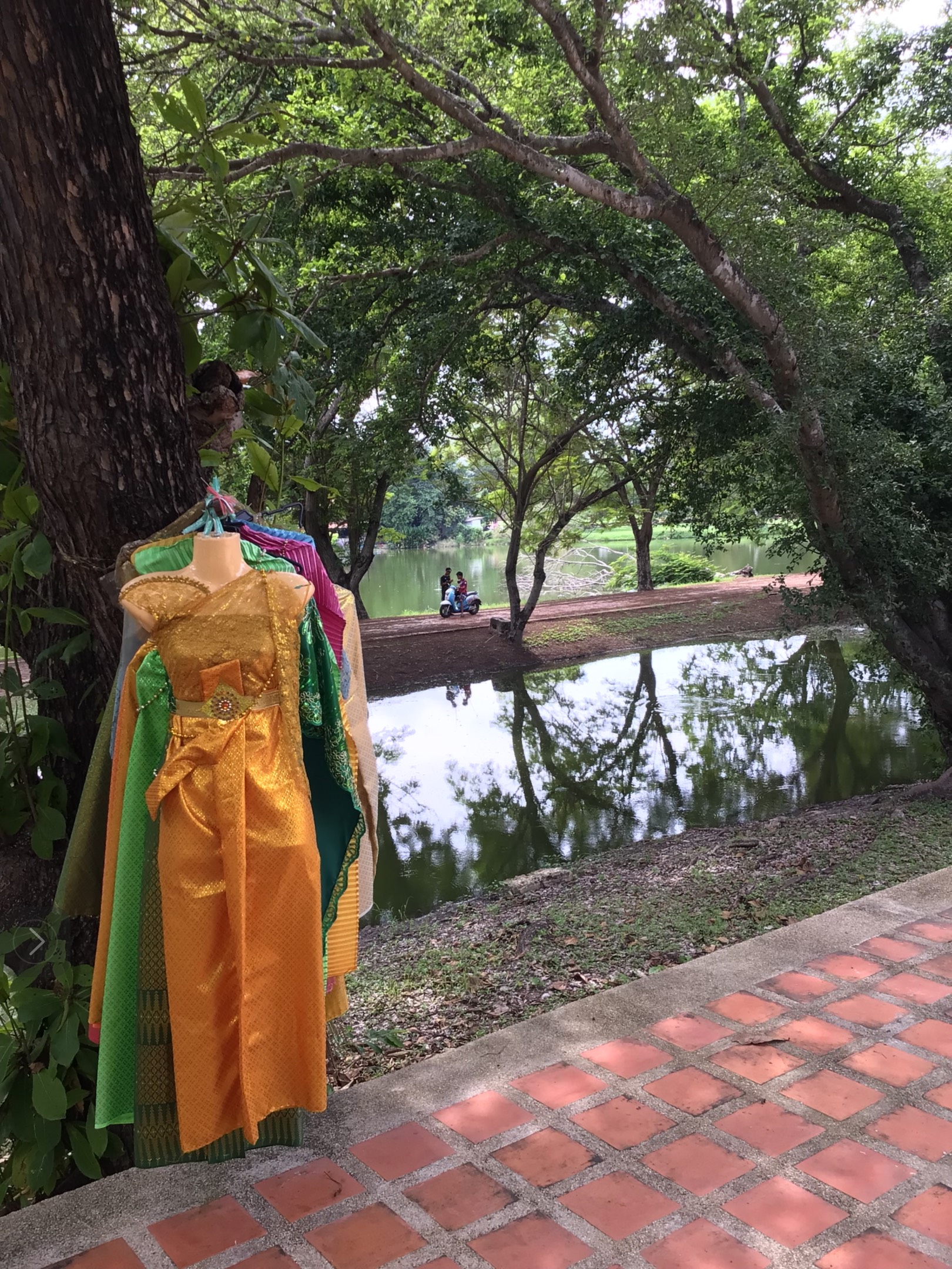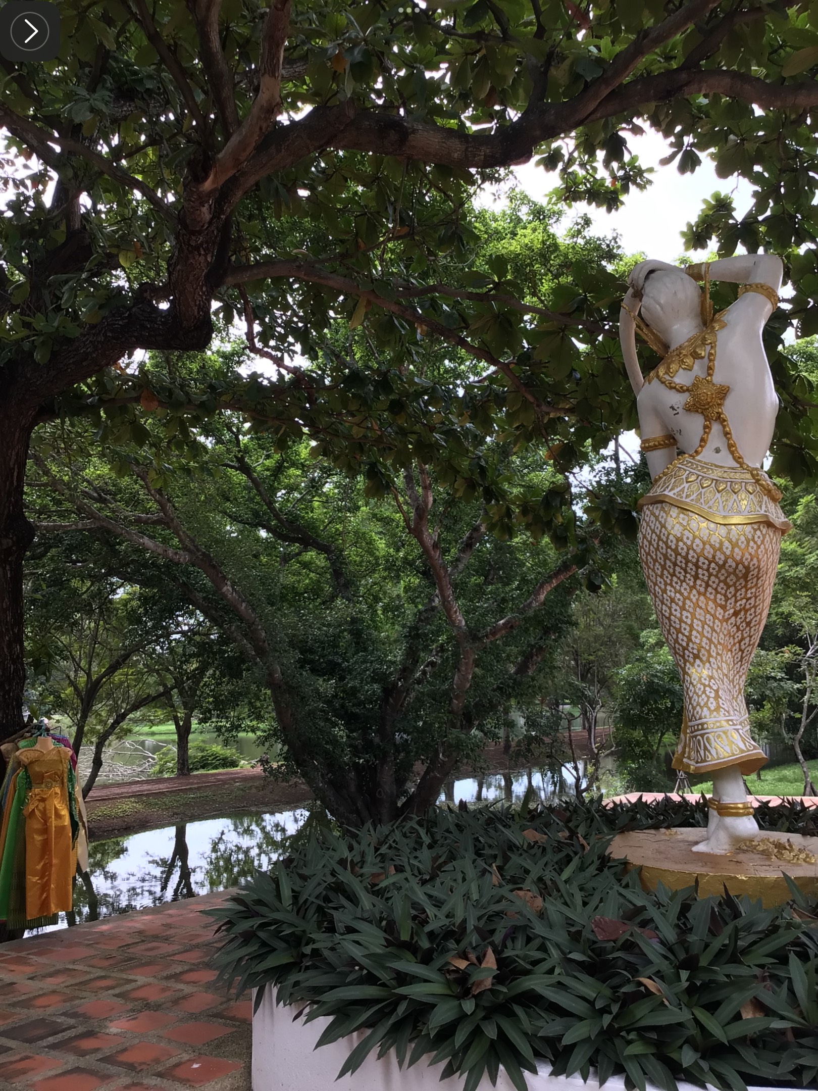 When I was younger and would travel solo, I rarely had the time or resources to meaning-make of all of the cultural phenomena I would experience. This is not to say that I did *a lot* by any means – however the journeys I *did* go on, were all profound. Since I’m invested in learning about the culture of Thailand as it connects with my practice, I have slowly been picking away at questions that were raised back in November when I visited with a group and then wandered a bit solo. At the beginning of our trip, I vividly recall a moment interacting with several bedazzled dresses in the ancient capital city of Ayutthaya. The group was wandering the grounds of ancient ruins when I followed a path back to a few bridges, dwellings, and offering sites. I remember thinking the dresses were for the trees. After some digging, I now know these dresses were to tame the spirit of legendary Mae Nak.